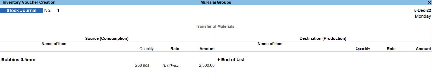 Inventory Transactions refers to the records you maintain about all inventory movements, including new purchases and sales that are part of your daily business. You can use the corresponding voucher type in Tally Prime for different transactions. You can also use Stock Journal to record different types of stock movements, like those between your own godowns /locations, or adjustments due to leakage or damage.