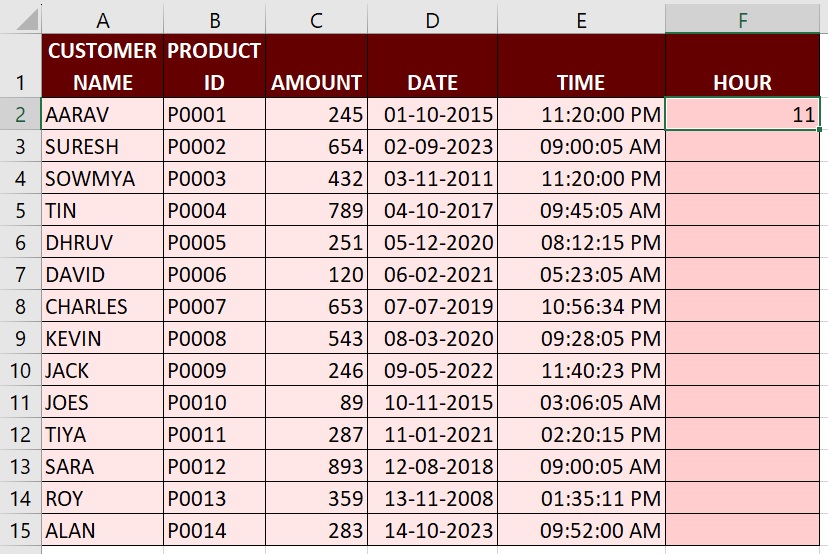 We need to Select the cell Which you want to extract the Hour from the Time within the Brackets.