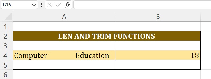 Assume cell A4 contains the text "Computer Education" (with extra spaces). You can use the TRIM function to clean up the extra spaces.