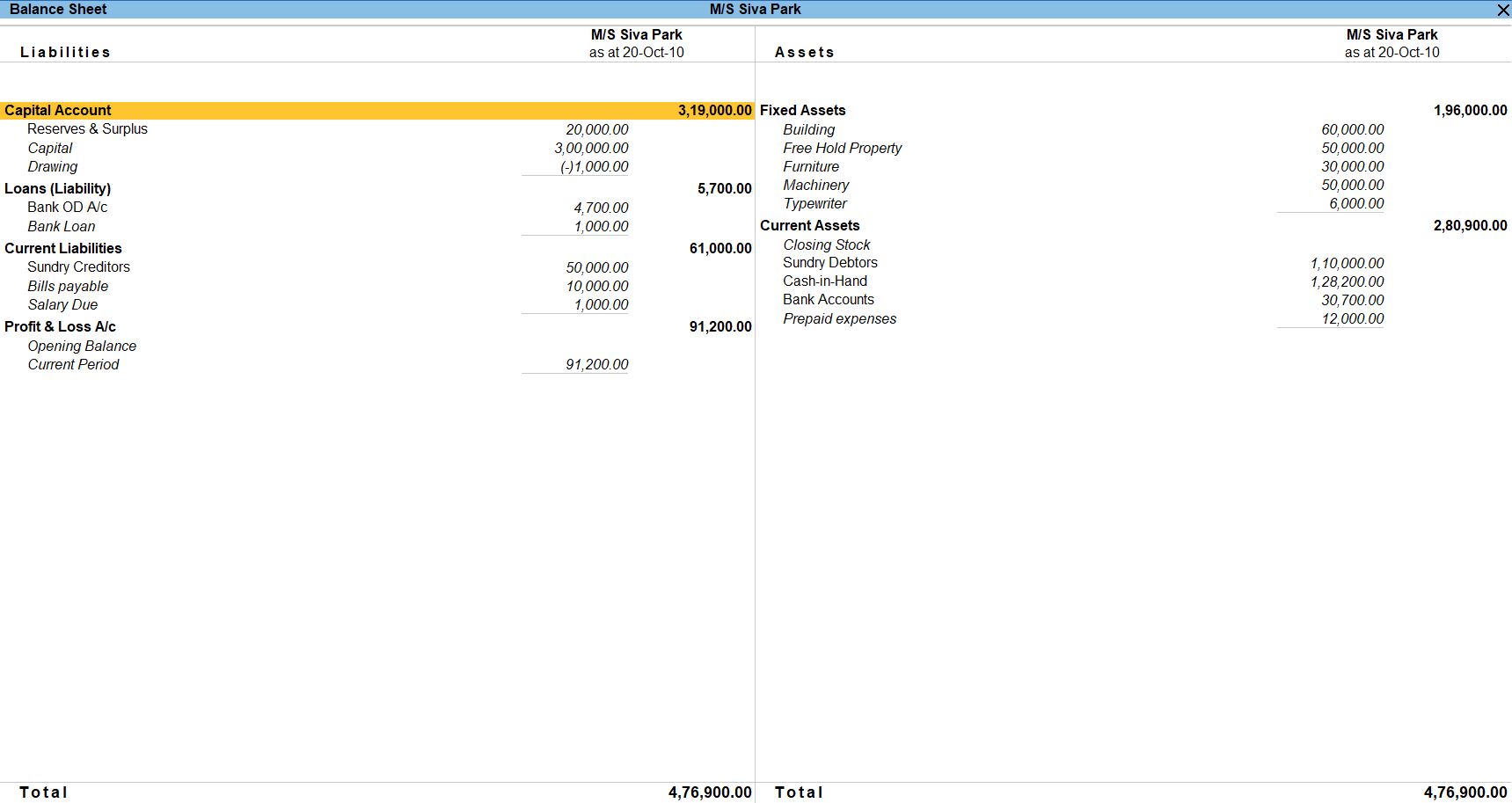 | Free hold property | 50000 | Bank O/d | 5000 |